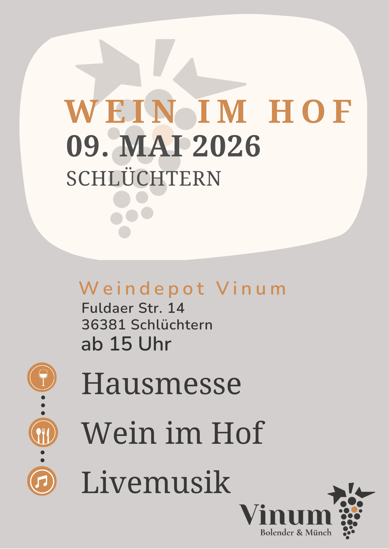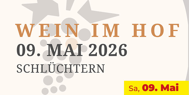 Wein im Hof 09.05.2026 Ab 15 Uhr im Weindepot Vinum Fuldaer Straße 14 in Schlüchtern Dateien Wein_im_Hof_09.05.2026.png 170 KB zurück