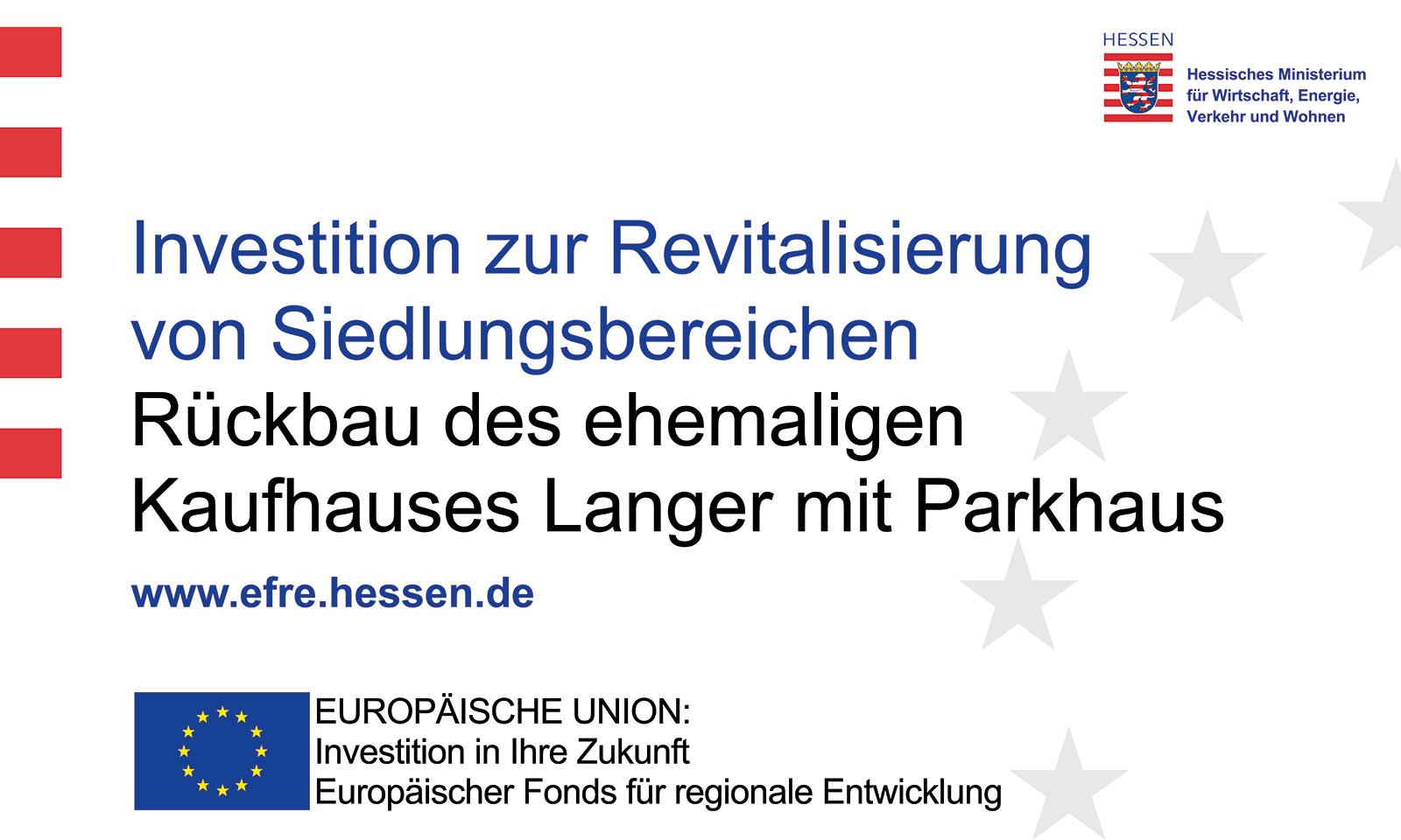 Das ehemalige Kaufhaus Langer mit angrenzendem Parkhaus wurde nach Erwerb der Immobilie durch die Stadt Schlüchtern zurückgebaut. Diese Neuordnung des Areals kann mit einer städtebaulich und gestalterischen Aufwertung einhergehen.