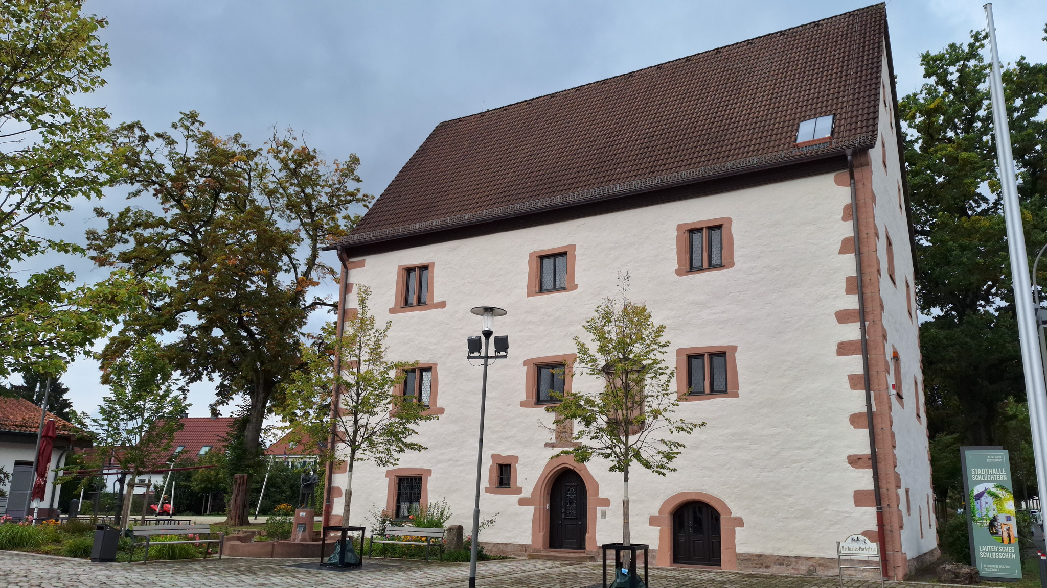 In der Schlossstraße steht gegenüber der neuen Stadthalle in einer kleinen Grünanlage das älteste Profangebäude der Stadt. An gleicher Stelle hat bereits 1338 ein Steinhaus gestanden. Dabei handelte es sich um das Trimbergsche Hofgut. 1362 erhielt Sanne, die Witwe Hermanns von Schlüchtern, diesen klösterlichen Vogthof von Konrad von Trimberg zu Lehen. Um 1440 kam es in den Besitz des Hans von Lautern. Dieser ließ seinen Lehensitz umbauen und erweitern.
