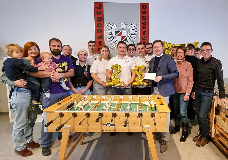 Bürgermeister Matthias Möller ließ es sich nicht nehmen, den Mitgliedern zum 25-jährigen Bestehen des Vereins zu gratulieren und persönlich vorbeizuschauen. Er sagt: „Der Degenfelder Jugendtreff ist eine wichtige Organisation in unserer Stadt. Er gibt den Jugendlichen einen Ort für den Austausch. Für die Entwicklung eines jungen Menschen ist das ganz essenziell.“ Als Präsent übergab Matthias Möller den Mitgliedern des Vereines eine Geldspende. Darüber freute sich Hendrik Fehl: „Wir wollen uns in diesem Jahr noch einen Dartautomaten anschaffen. Spenden sind hier immer gern gesehen.“