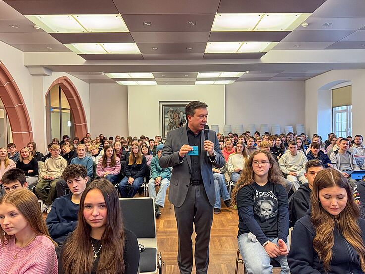 Das war der bislang größte Talk: Gut 800 Schülerinnen und Schüler des Ulrich-von-Hutten-Gymnasiums (UvH) waren beim zweiten Schülertalk mit von der Partie. Schlüchterns Bürgermeister Matthias Möller stellte sich den Fragen der Kinder und Jugendlichen, die Moderator Nico Bensing wie gewohnt thematisch sortiert vortrug. Dabei wurde deutlich: Die jungen Menschen haben großes Interesse und wollen ihre Heimat mit gestalten. „Zeit, dass sie gehört werden“, findet Rathauschef Möller.